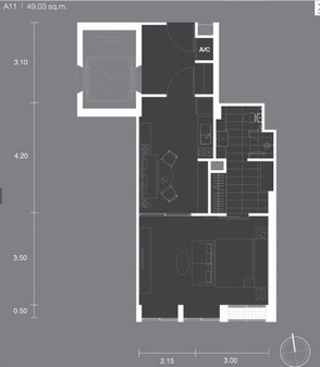 ขนาด 49 ตรม. 1 ห้องนอน 1 ห้องน้ำ