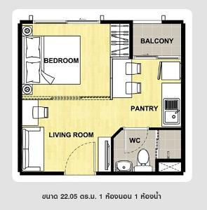ขนาดพื้นที่ 22.0 ตารางเมตร