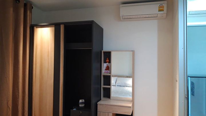 มี ตู้เสื้อผ้า เตียงขนาด 5 ฟุตพร้อมที่นอน ตู้ข้างเตียง โซฟา โต๊ะทานข้าว-เก้าอี้ แบบ 2 ที่นั่ง ตู้เย็น ไมโครเวฟ ทีวี พัดลม