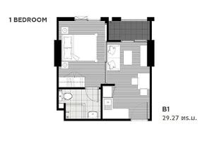 Chapter one eco ห้วยขวาง ห้อง Studio ขนาด 23.18 ตร.ม.