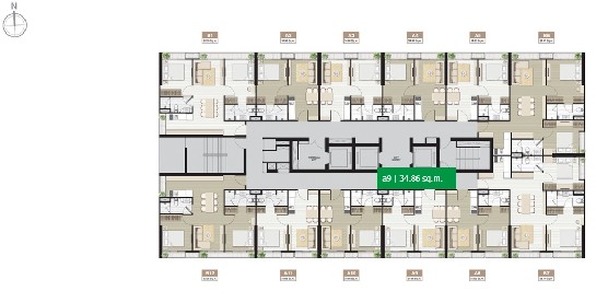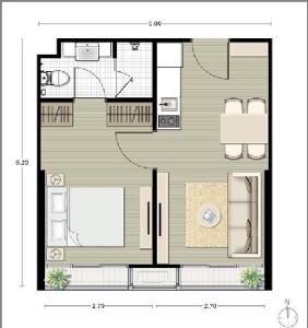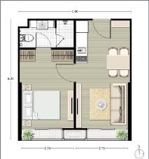 1 ห้องนอน 1 ห้องน้ำ 34.86 ตรม. ชั้น 16 Type 16A-9