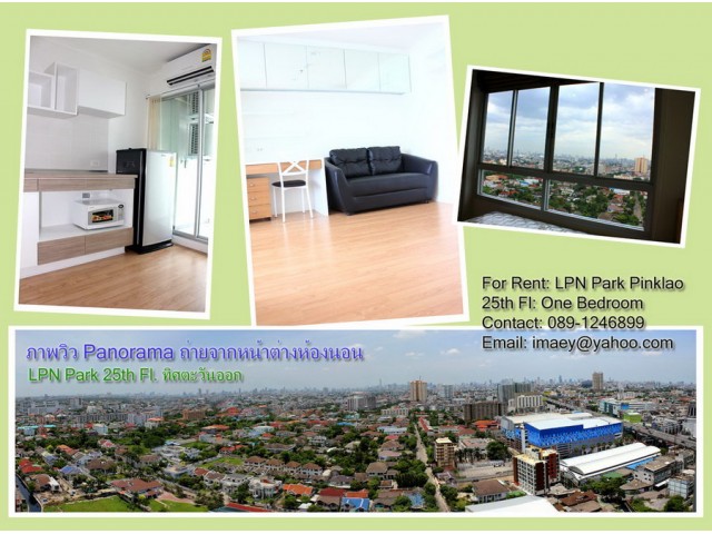 ให้เช่าคอนโด LPN Park ปิ่นเกล้า อาคาร A ชั้น 25 ชั้นสูงลมเย็นสบาย ไม่ร้อน ห้องหันหน้าทิศตะวันออก วิวเมือง แดดเช้า ดูพระอาทิตย์ขึ้น ขนาดห้อง 28 ตารางเมตร 1 ห้องนอน 1 ห้องน้ำ ปูพื้นห้องด้วยไม้ลามิเนตสวยงาม ตกแต่ง Built-in เฟอร์นิเจอร์อย่างดี พร้อมเครื่องใช้ไฟฟ้าครบเข้าอยู่ได้ทันที