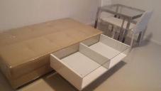 เตียงพร้อมที่นอน และติดผ้าม่านเรียบร้อย