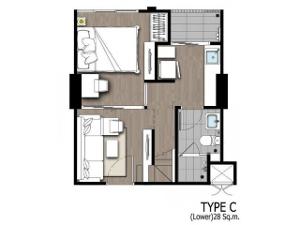 อาคาร B ชั้น 14 ห้องเลขที่ 1B1421 MOFF design มีชั้นลอย ชั้นล่าง 28 ตร.ม + ชั้นลอย 8 ตร.ม