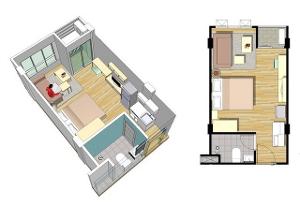 แบบห้อง สตูดิโอ 1 ห้องน้ำ