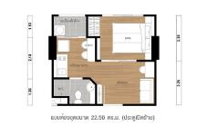 ขนาดห้อง : 22.50 ตารางเมตร, 1 ห้องนอน / 1 ห้องน้ำ / 1 ห้องนั่งเล่น / 1 ครัว