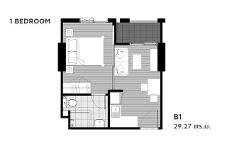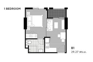 ตึก C ชั้น 4 ห้อง C00403 1 Bedroom type B1 (29.27sq.m) พร้อมตกแต่ง แอร์ 2 ตัว ที่จอดรถส่วนตัว