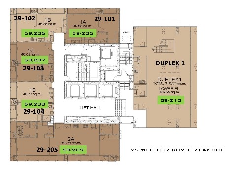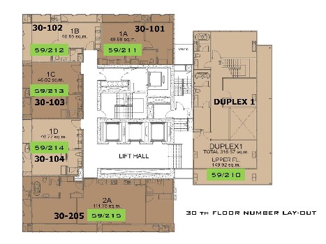 ห้อง Duplex 3 ห้องนอน 2 ห้องน้ำ ขนาด 314.83 ตร.ม. ชั้น 29-30 มีอ่างอาบน้ำ