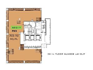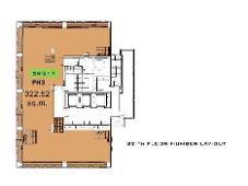 ห้อง Penthouse 3 ห้องนอน 2 ห้องน้ำ ขนาด 374 ตร.ม. ชั้น 32 มีอ่างอาบน้ำ