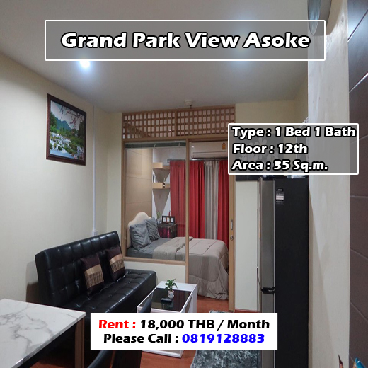 ให้เช่า คอนโด Grand Parkview อโศก ชั้น 18 ขนาด 35 ตรม. ราคา 20000