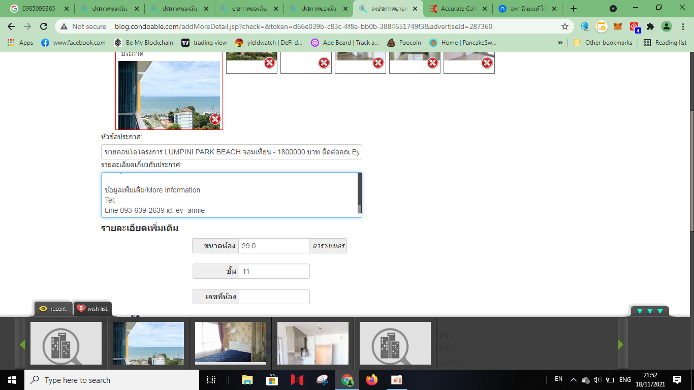 ขาย คอนโด LUMPINI PARK BEACH จอมเทียน 32 ตรม. วิวทะเล ฟรีโอน