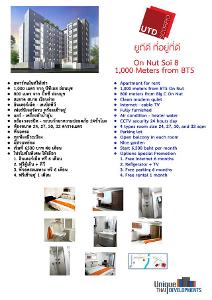 Apartment for Rent อพาร์ทเม้นท์ให้เช่า อ่อนนุช ซอย 8 ใกล้ BTS อ่อนนุช มีเฟอร์นิเจอร์ครบ (UTD Scorpio Apartment)