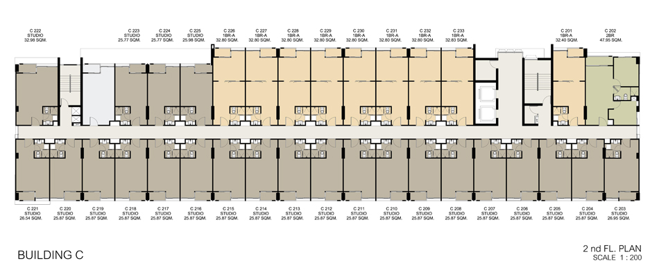 Building C - ห้องขนาด 32.80 ตรม. แบบ 1 ห้องนอน พร้อมกับ Furnished ของ ModernForm อยู่ชั้น 2 อาคาร C