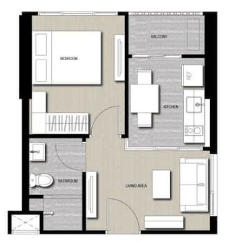- ชนิด 1 ห้องนอน 1 ห้องน้ำ