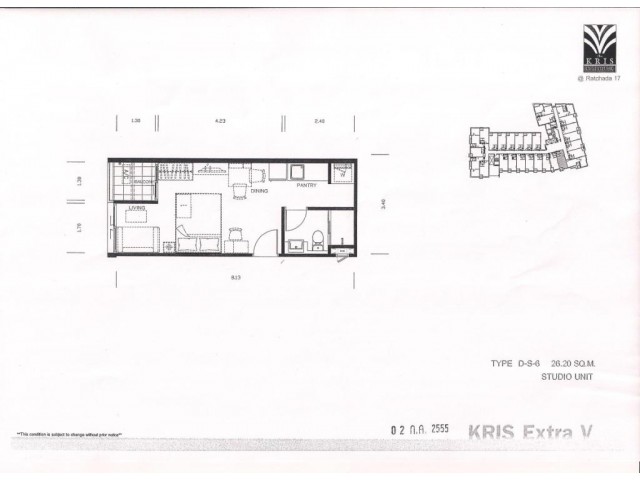 ขายดาวน์ คอนโด THE KRIS EXTRA 5 ชั้น 3 ห้องสตูดิโอ ขนาด 28 ตร.ม.