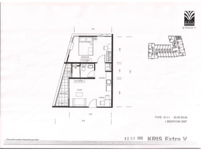 ขายดาวน์ คอนโด THE KRIS EXTRA 5 ชั้น 3 ห้องสตูดิโอ ขนาด 28 ตร.ม.