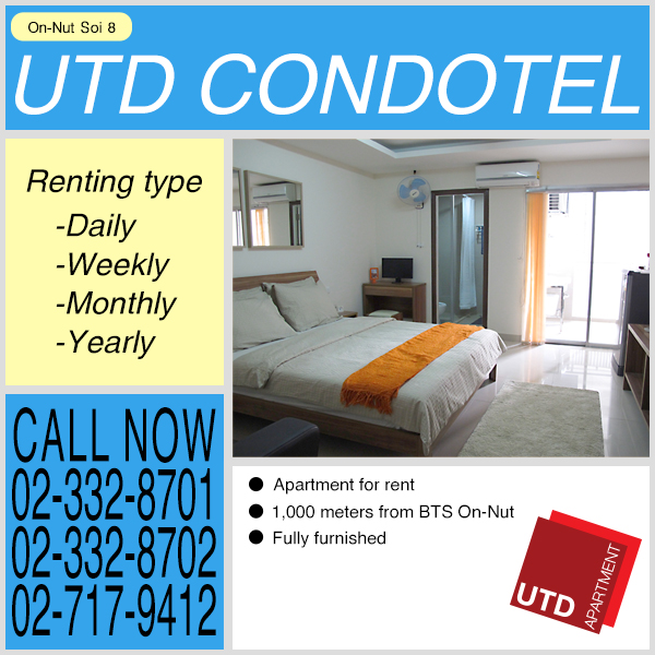 ให้เช่าคอนโดโครงการ UTD Apartment on-nut soi8- 10000 ต่อเดือน ติดต่อคุณ kan