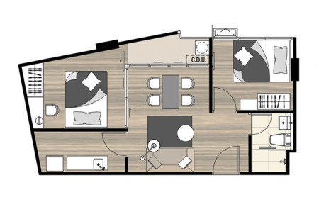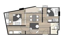 - ชนิด 2 ห้องนอน 1 ห้องน้ำ