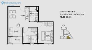 P09CF1907072 The Saint Residences 2 Bed 1 Bath 47 Sqm