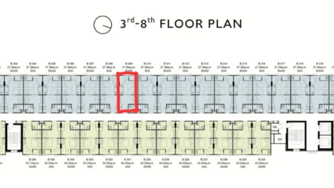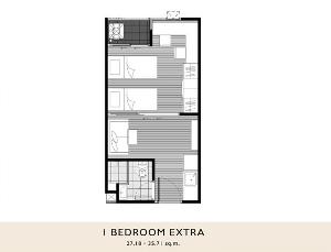 รหัส EVE004 ให้เช่า The Niche Mono Bangna ห้องขนาด34.73ตรม. แบบ 1ห้องนอน 1ห้องน้ำ ชั้น 3