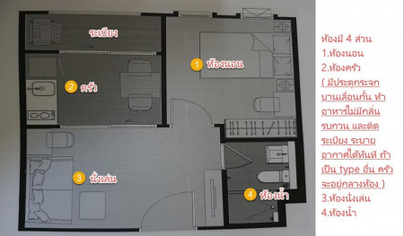 - ชนิด 1 ห้องนอน 1 ห้องน้ำ
