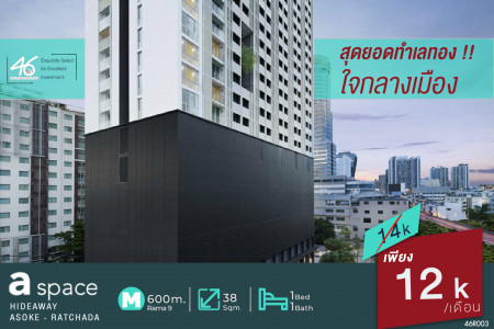 ให้เช่า คอนโด สุดปังงง A SPACE อโศก-รัชดา ไฮด์อเวย์ 38 ตรม. ราคาดีมากกก