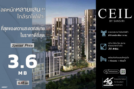 ขายด่วน ห้องสุดคุ้ม ราคาดี ราคา ตรม. ไม่ถึงแสน Ceil by Sansiri ใกล้ BTS เอกมัย