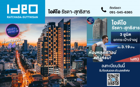 ด่วน !!! ไอดีโอ รัชดา-สุทธิสาร เปิดจองห้องแต่งครบ พร้อมยกกระเป๋าเข้าอยู่ 3 ยูนิตเท่านั้น ห้องหลุดดาวน์ เริ่ม 3.19 ล้าน
