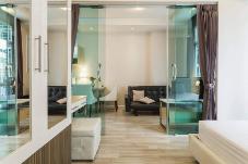 มีห้องนอนมีประตูกระจกกั้นเป็นสัดส่วน