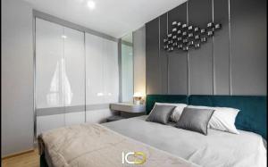 ว่างเช่า ห้องนอนขนาดใหญ่ คอนโด Quinn Ratchada 17 ห้องสีขาวตกแต่งด้วยเฟอร์มาครบ