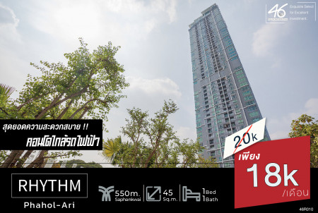 ให้เช่า คอนโด 1 ห้องนอน เฟอร์ครบ ชั้น 18 Rhythm พหล-อารีย์ 45 ตรม. ใกล้รถไฟฟ้า BTS อารีย์