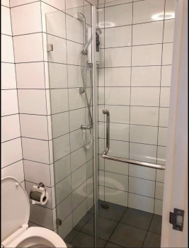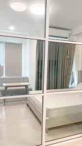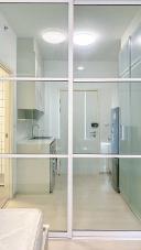 มีประตูกระจกบานเลื่อนกั้นระหว่าง ห้องนอน กับห้องน้ำ/ครัว