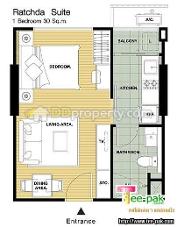ขาย ไอวี่ รัชดา IVY RATCHADA ชั้น 2 ขนาด 31 ตรม. แบบ Studio 1ห้องน้ำ มีกั้นโซนห้องครัว