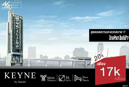 Code PSK04090622........Keyne by Sansiri สำหรับขาย 1 ห้องนอน 1 ห้องนำ้ ชั้นสูง 18XK-ตร.ม.