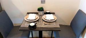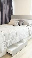 เฟอร์นิเจอร์: เตียงพร้อมฟูกขนาด 5 ฟุต และ 3.5 ฟุต, โซฟา, ชุดโต๊ะทานอาหารสำหรับ 2 ท่าน, ม่าน 2 ชั้น, ตู้เสื้อผ้า built-in, ชุดครัว built-in, ชั้นวางทีวี