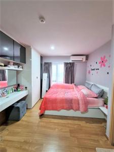 ว่างเช่า ห้องนอนขนาดใหญ่ คอนโด Quinn Ratchada 17 ห้องสีขาวตกแต่งด้วยเฟอร์มาครบ