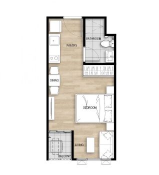 สตูดิโอ 1 ห้องนอน 1 ห้องน้ำ ขนาด 24.68 ตร.ม.