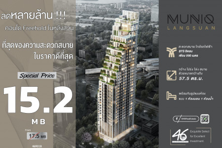 ขาย คอนโด 1 นอน ขนาดใหญ่ MUNIQ Langsuan 57.5 ตรม. คอนโด Freehold ในทำเลที่หายากมาก