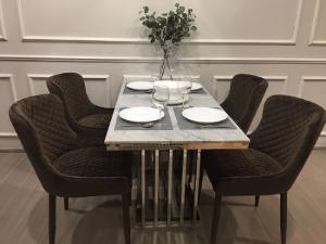 - โต๊ะทานข้าวหินอ่อนแท้ เก้าอี้ผ้ากำมะหยี่อย่างดี