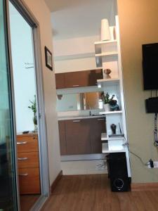 ขายคอนโด bliz สุขุมวิท 109 ขนาด 30 ตารางเมตร ชั้น 4 แบ่งกั้นกระจกเป็นสัดส่วน แยกห้องนอนและห้องนั่งเล่น พร้อมเฟอร์นิเจอร์ครบชุด พร้อม