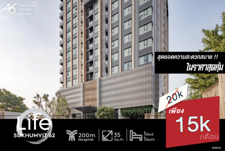 ให้เช่า คอนโด Life สุขุมวิท 62 30 ตรม. ราคาถูกที่สุดในตึก