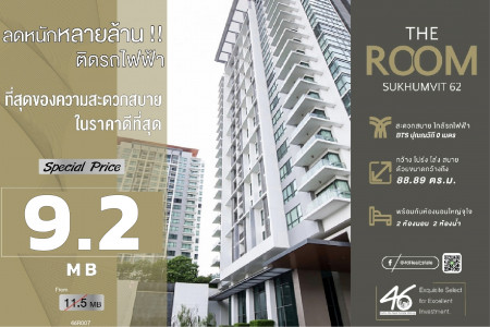 ขาย คอนโด 2 นอน ขนาดใหญ่ THE ROOM สุขุมวิท 62 88.89 ตรม. ลดราคาลงมาอีกเยอะมาก ห้องไซส์ใหญ่ที่สุดในโครงการ