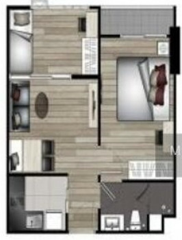 2 ห้องนอน 1 ห้องน้้ำ 1 ห้องรับแขก