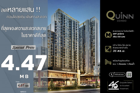 ขาย คอนโด 1 ห้องนอน Quinn Condo รัชดา 17 46.17 ตรม. วิวเมืองไม่บล็อก ราคาต่อรองได้