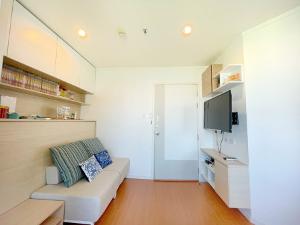 1.โซฟาบิวท์อินตรงส่วนห้องนั่งเล่นแปลงเป็นเตียงนอน 3.5 ฟุตได้