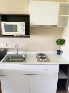 คอนโด Noble Revent ห้องบิ้วอินเคาน์เตอร์ครัว และตู้ชั้นวางในโซนนั่งเล่น ขายราคาพิเศษ ลดพิเศษ