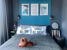 - ตกแต่ง สไตล์ สแกนดิเนเวียน+ลอฟต์ ผนังสีน้ำเงิน