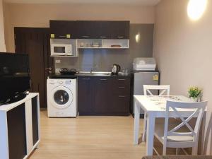 (พร้อมอุปกรณ์ทำครัวเครื่องครัวเล็ก) เครื่องทำน้ำอุ่น , ไมโครเวฟ , เครื่องซักผ้า