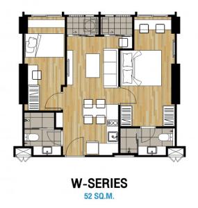 - ขนาดห้อง 52 ตร.ม. 2 ห้องนอน , 2 ห้องน้ำ ,1 ห้องครัว ,1 ห้องนั่งเล่น ชั้น 18