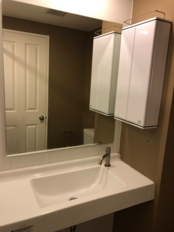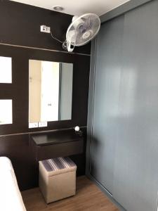 - พัดลมติดพนังที่โต๊ะเครื่องแป้ง (สำหรับเป่าผมหลังสระ)